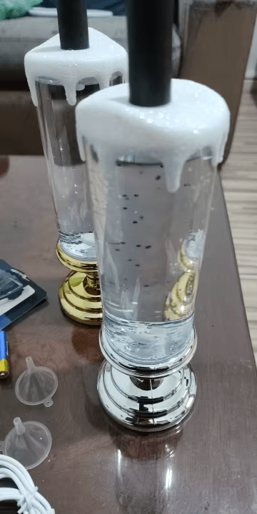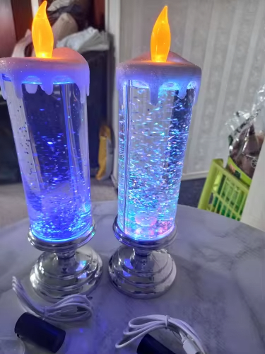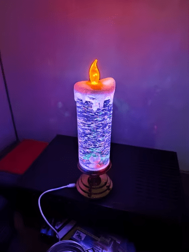 Když je svíčka zapnutá, třpytivá kapalina se točí a LED mění barvu automaticky.